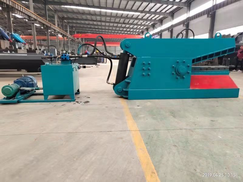 The crocodile shear is composed of a shearing cylinder, a shearing knife, a sliding block pressing knife, a lower knife seat, a pressing cylinder, etc. When the shearing work is running, the hydraulic pump station (power output source) supplies oil to the pressing cylinder to allow the sliding block The pressing knife is pushed to the lower knife seat to complete the fixed compression of the material, and then the hydraulic pump station supplies oil to the shearing cylinder to make the shearing knife go down to complete the cutting step. After the shearing is completed, the hydraulic pump station completes the return movement driven by the hydraulic oil backflow of the shearing cylinder and the pressing cylinder successively.