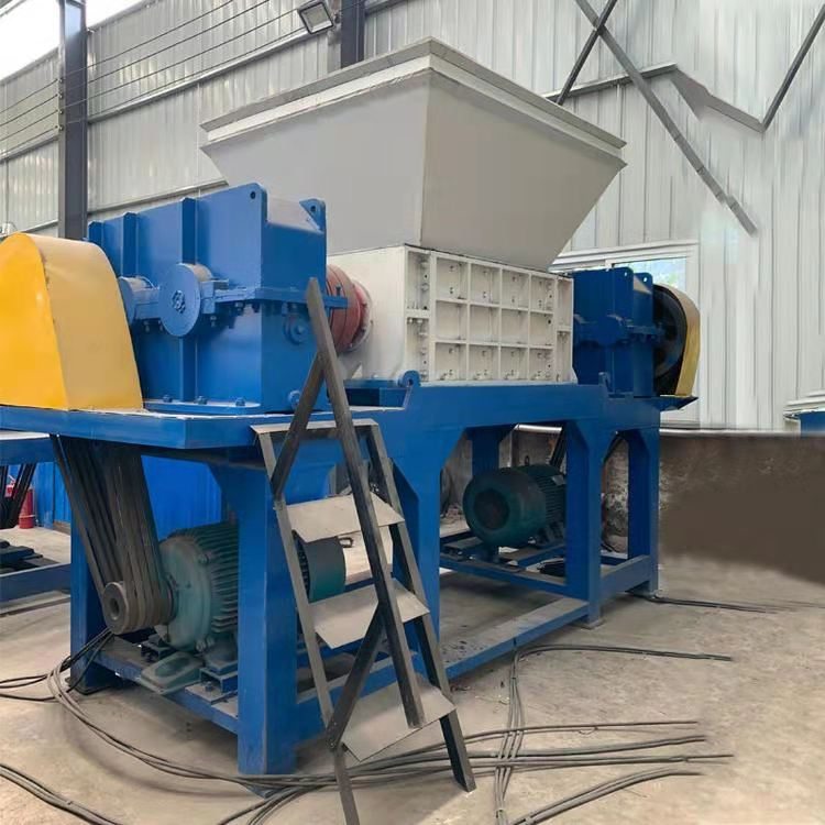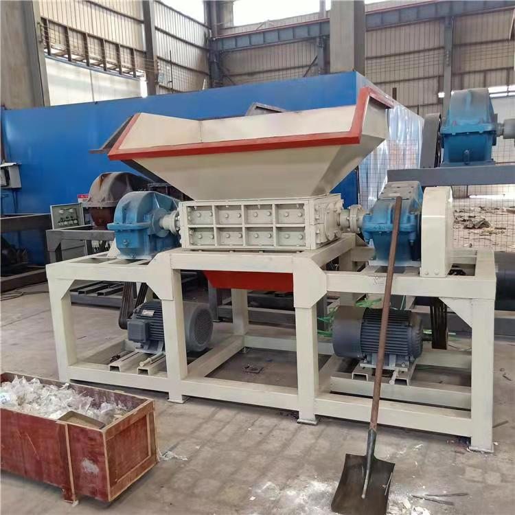 The can shredder adopts dual-shaft or single-shaft rotation at low speed, and uses a cutter head to cut, cut, tear and pull materials. The direct-connected worm gear motor is directly installed on the driving shaft of the shredder, and transmitted to the driven shaft through gear transmission, so that the movable knife of the driving shaft and the stationary cutter head on the housing form a relative movement. The spiral tooth cutter discs on the driving shaft are arranged in a staggered manner, so that after the material enters, it is simultaneously subjected to the effects of squeezing, tearing and shearing, so that the material can be shredded.